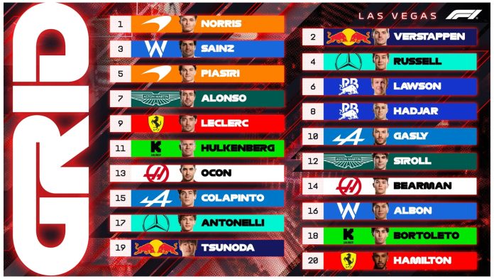 ¡Bienvenidos! Aquí podrán seguir todos los detalles de la carrera a 50 vueltas que se realizará en el circuito urbano del Gran Premio de Las Vegas con Franco Colapinto iniciando desde el 15° puesto.