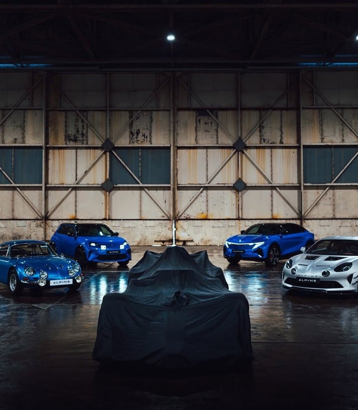 Tres autos azules y uno gris. Un posible guiño sobre los colores que podría llevar el Alpine A526 (@AlpineF1Team)
