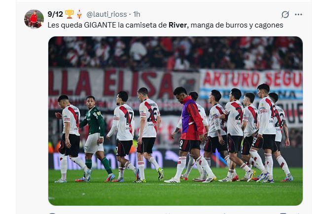 Al finalizar el partido, los memes no tardaron en inundar las redes sociales. Los hinchas de River Plate lamentaron el desenlace y recordaron la eliminación de parte del Palmeiras. Con ironías con Marcelo Gallardo y dardo hacia algunos futbolistas se expresaron en X (antes Twitter). Por supuesto, hubo celebraciones de los rivales del Verdao, burlas hacia su DT Abel Ferreira y se destacó de gran manera el nivel de Liga de Quito, con varios memes relacionados a Messi y el súper equipo que integró en el FC Barcelona.