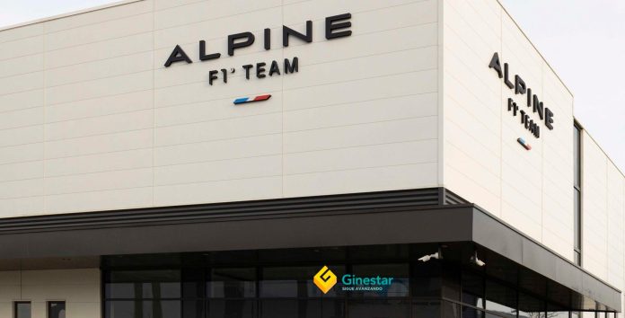 La moderna fachada de las instalaciones de Alpine F1 Team en Viry-Chatillon, Francia, exhibe su logotipo y un emblema tricolor, con el logo de Ginestar visible en la entrada (Imagen Ilustrativa Infobae)