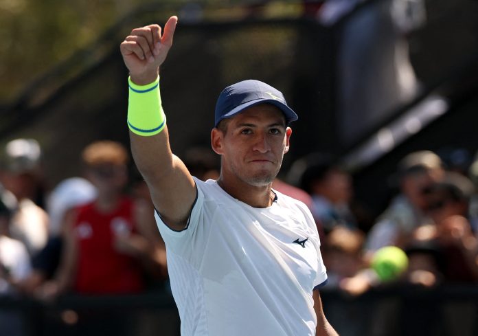 Sebastián Báez debutó con un triunfo en el Australian Open tras vencer al francés Giovanni Mpetshi Perricard (Crédito: REUTERS/Hollie Adams)