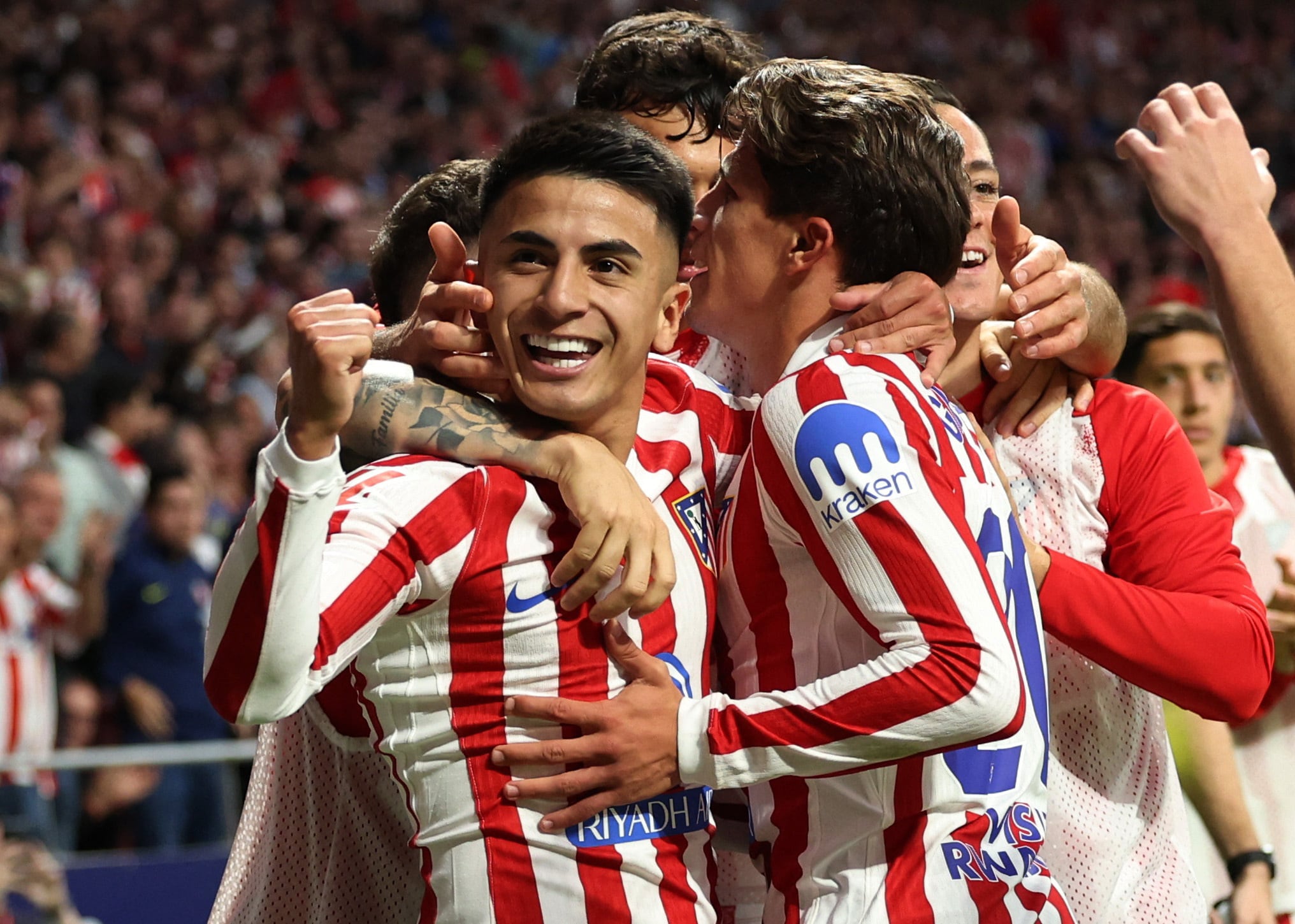 El festejo del primer gol de Almada con la casaca del Atlético de Madrid (REUTERS/Violeta Santos Moura)