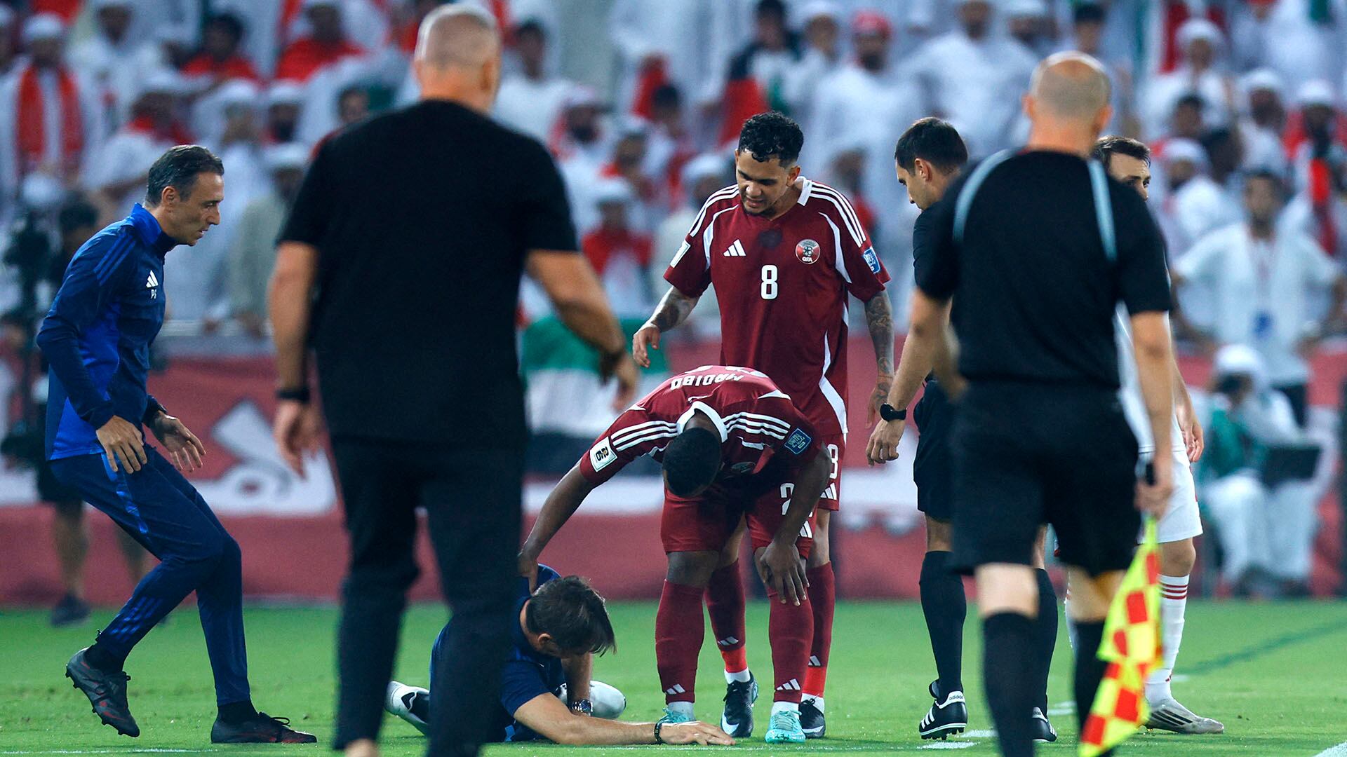 La victoria de la selección de Qatar frente a Emiratos Árabes Unidos clasificó a los qataríes al Mundial 2026 tras un encuentro que dejó imágenes insólitas, como el fuerte pelotazo que recibió en la cara el entrenador español Julen Lopetegui desde el borde del campo. Este episodio fue parte de la noche en la que el país de Oriente Medio aseguró por segunda vez su presencia en una Copa del Mundo de la FIFA, su primera clasificación desde las Eliminatorias asiáticas ya que la anterior había ingresado como país anfitrión.