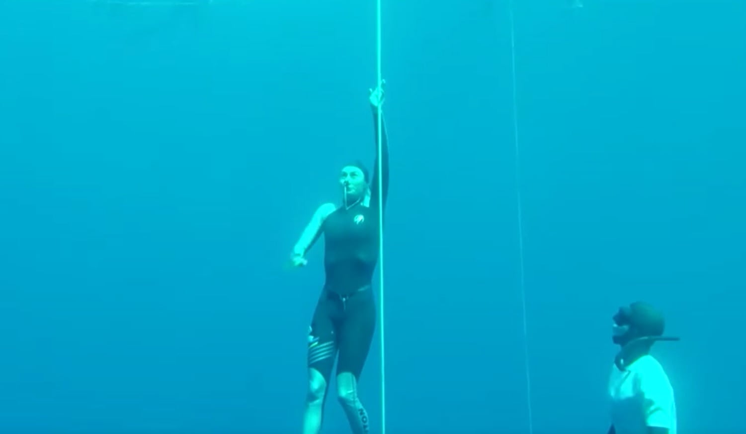 Esta inmersión superó por dos metros su propio récord mundial, establecido el año pasado en el mismo lugar.