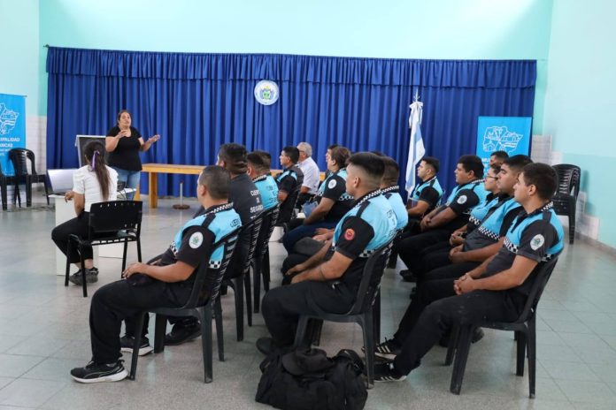 En el marco de la formación continua en materia de derechos y prevención, hoy se está llevando a cabo una capacitación sobre el protocolo de intervención en casos de violencia de género, dirigida al personal del Cuerpo de Seguridad. La actividad está a cargo del trabajador social Ismael Chocobar y de Eugenia Sánchez, representante de la Oficina de la Mujer, perteneciente a la Secretaría de Asuntos Sociales, bajo la dirección de la profesora Claudia Sequeira.