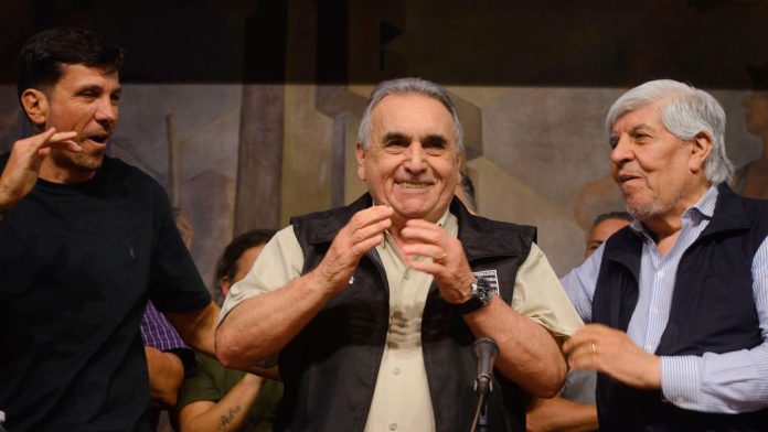 Juan Carlos Schmid, titular de la CATT (al centro), con Hugo Moyano y Juan Pablo Brey